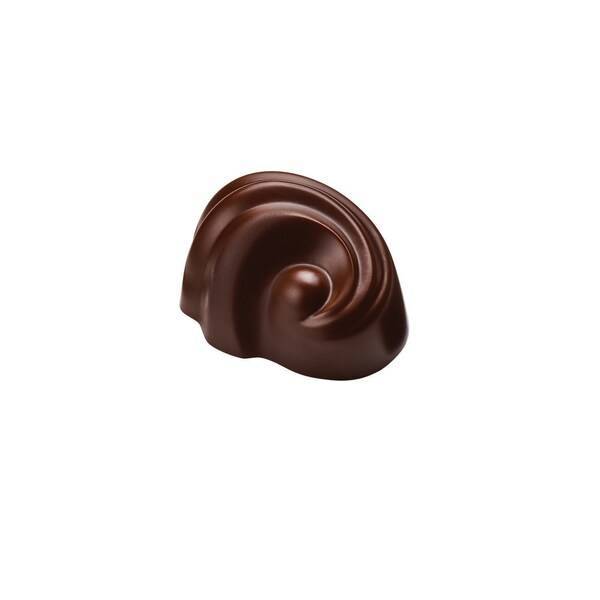 巧克力外形灵感源自十九世纪盛行的比利时「新艺术」建筑风格,优雅曲线宛如漩涡纹理;柔滑醇厚的85%黑巧克力甘纳许,将浓郁风味于口中层层释放。